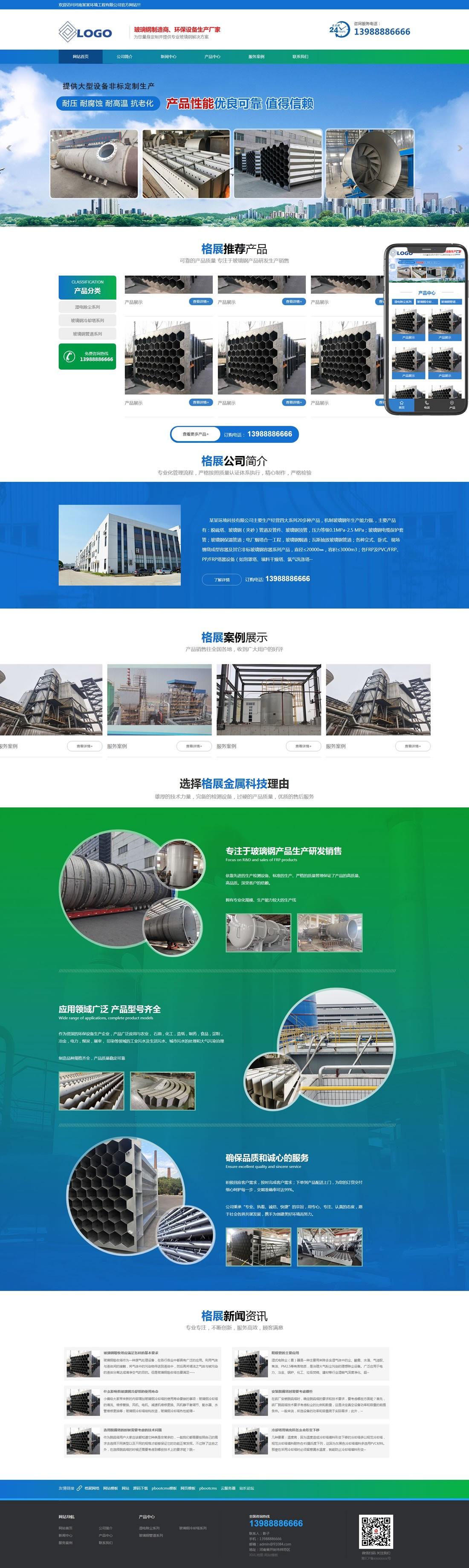 pbootcms模板 > 玻璃鋼環(huán)保設(shè)備類網(wǎng)站pbootcms模板(帶手機端)