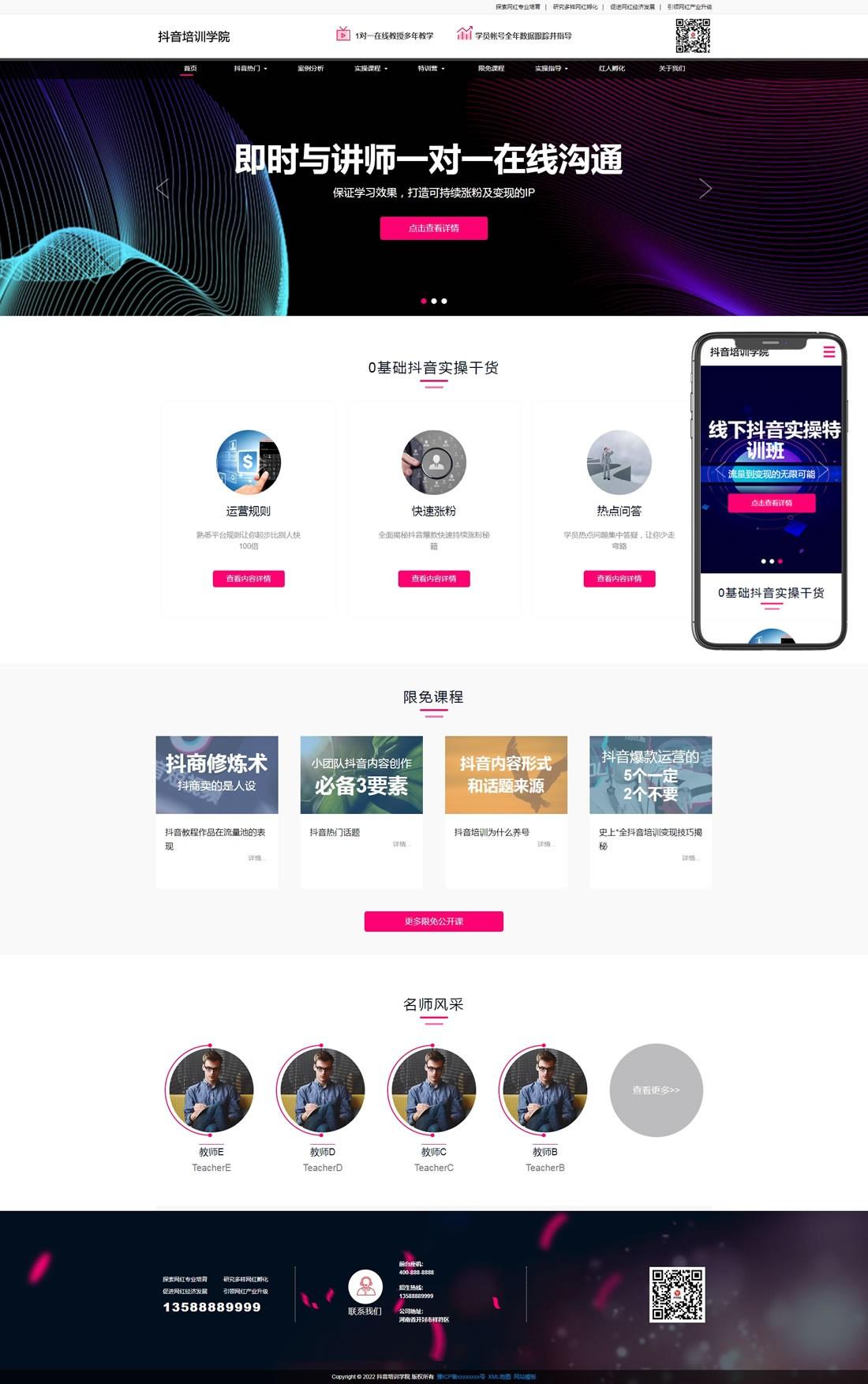 抖音培訓(xùn)學(xué)院類網(wǎng)站pbootcms模板(自適應(yīng)手機(jī)端)