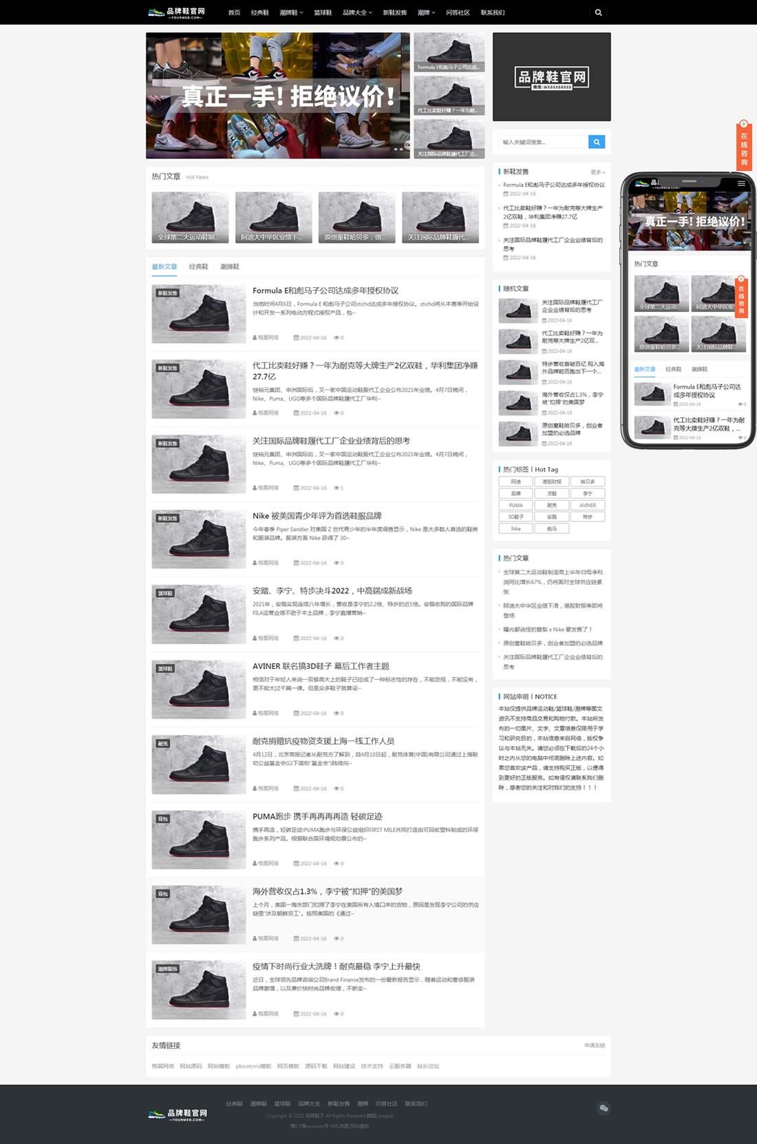 品牌鞋子貨源資訊類網(wǎng)站pbootcms模板(自適應(yīng)手機端)