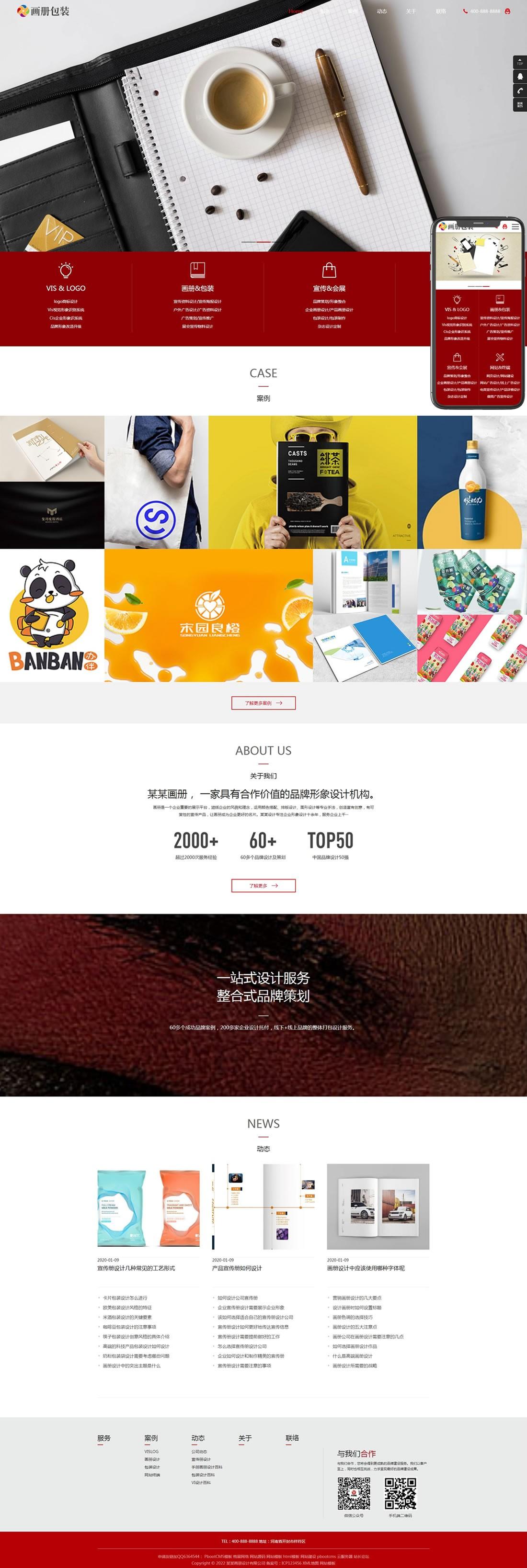 畫冊包裝設(shè)計類網(wǎng)站pbootcms模板(自適應(yīng)手機(jī)端)+利于SEO優(yōu)化