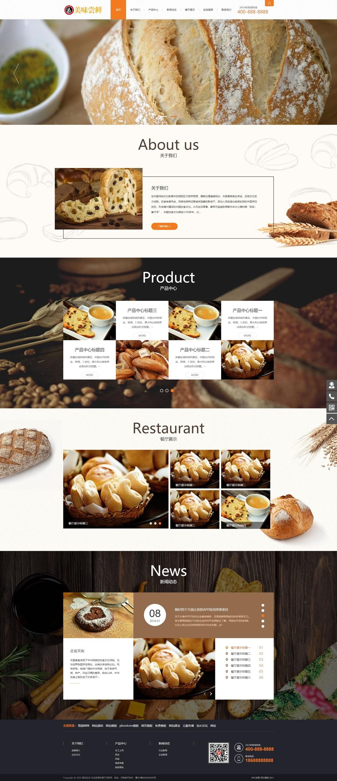PbootCMS內(nèi)核開(kāi)發(fā)的模板,該模板屬于面點(diǎn)糕點(diǎn)、蛋糕面包類企業(yè)使用!