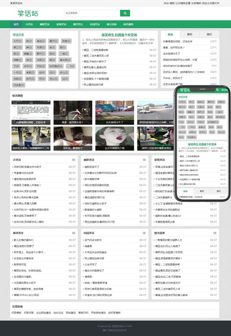 幽默笑話(huà)搞笑趣圖類(lèi)網(wǎng)站pbootcms模板(自適應(yīng)手機(jī)端)+利于SEO優(yōu)化