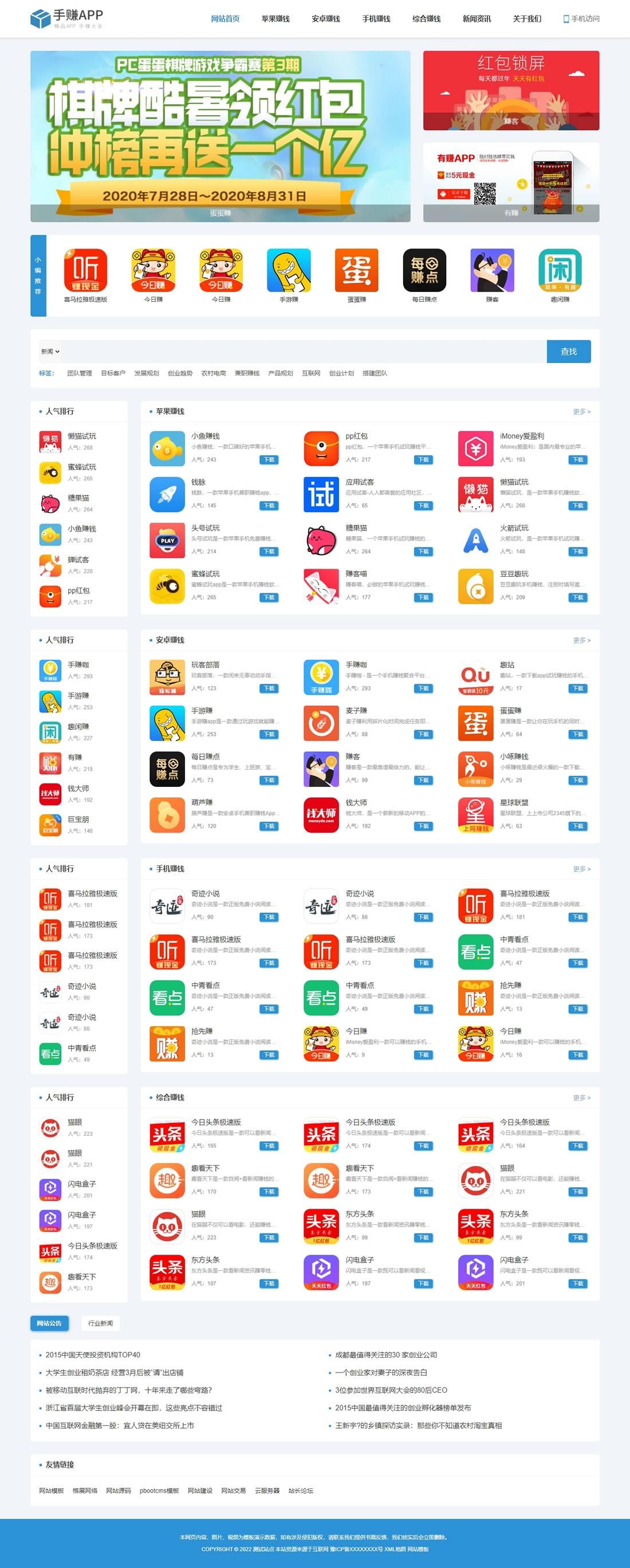 手機軟件應用APP下載類網(wǎng)站pbootcms模板(自適應手機端)